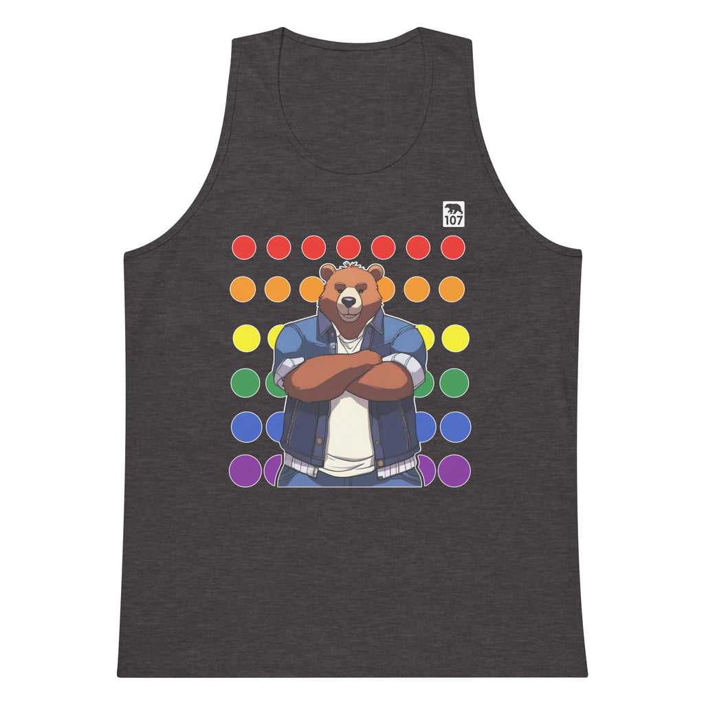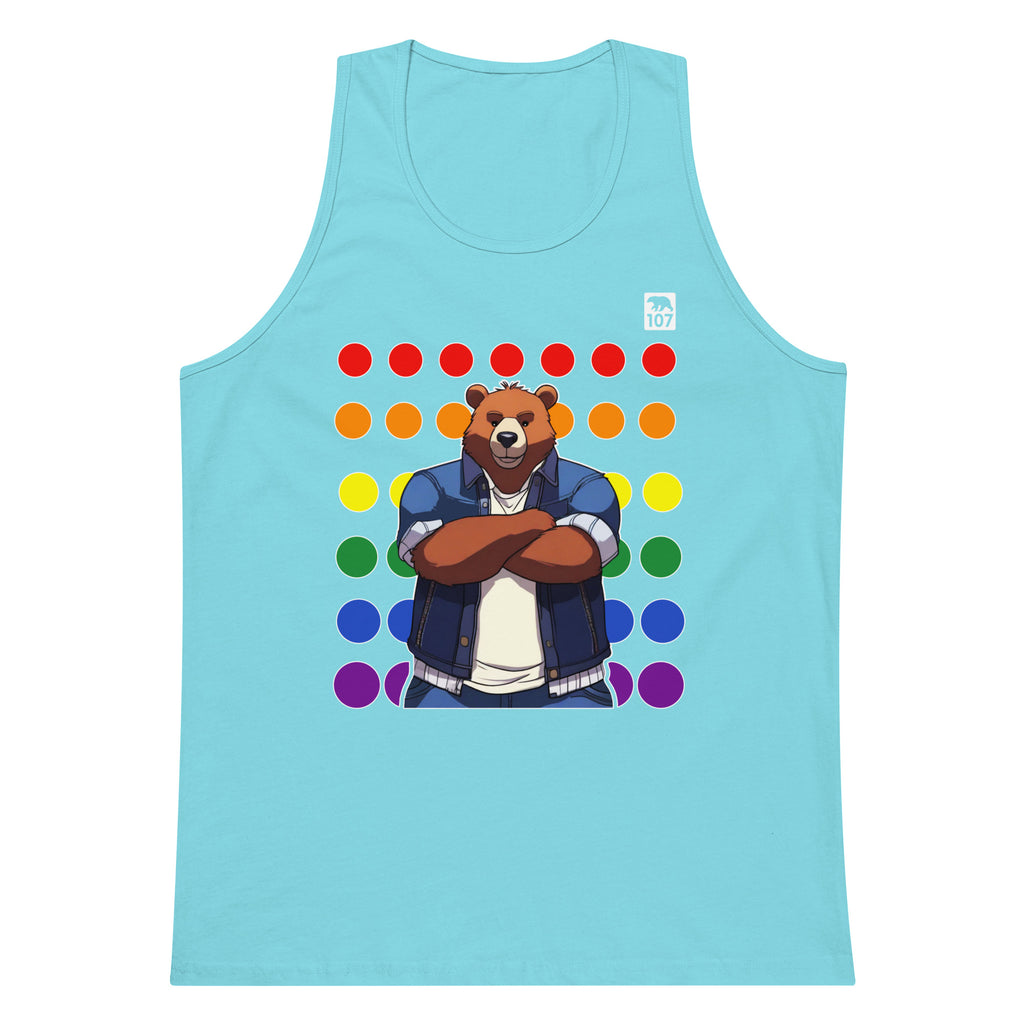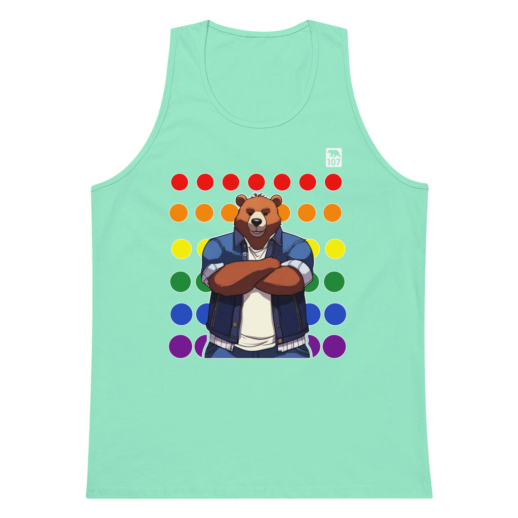Gay Pride Bear on Rainbow Dots tank top