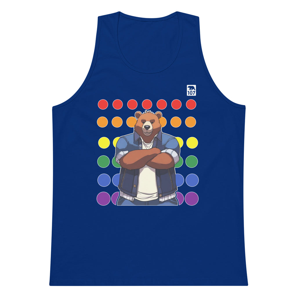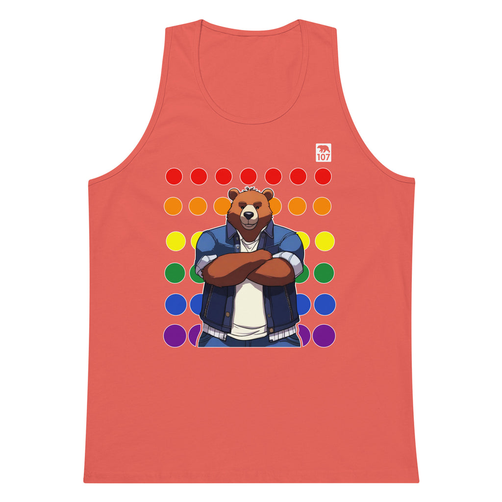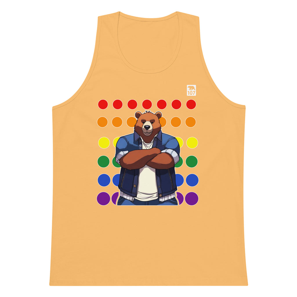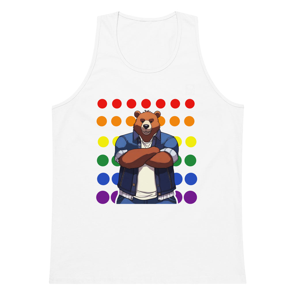 Gay Pride Bear on Rainbow Dots tank top
